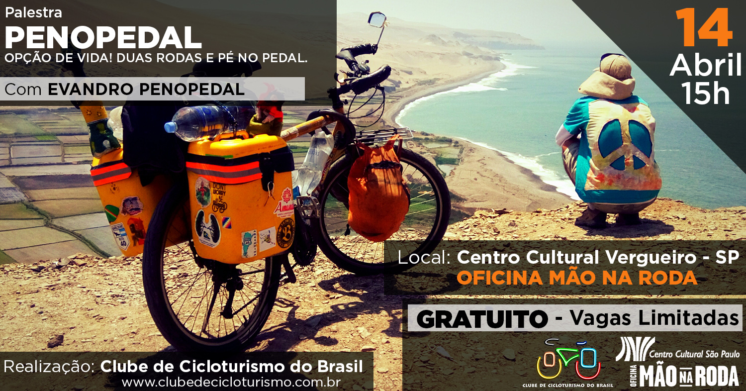 Esta atividade faz parte do ciclo de palestras e encontros mensais do Clube de Cicloturismo do Brasil no Centro Cultural São Paulo - Vergueiro (CCSP) em parceria com a Oficina Mão na Roda, sempre no segundo sábado do mês.
