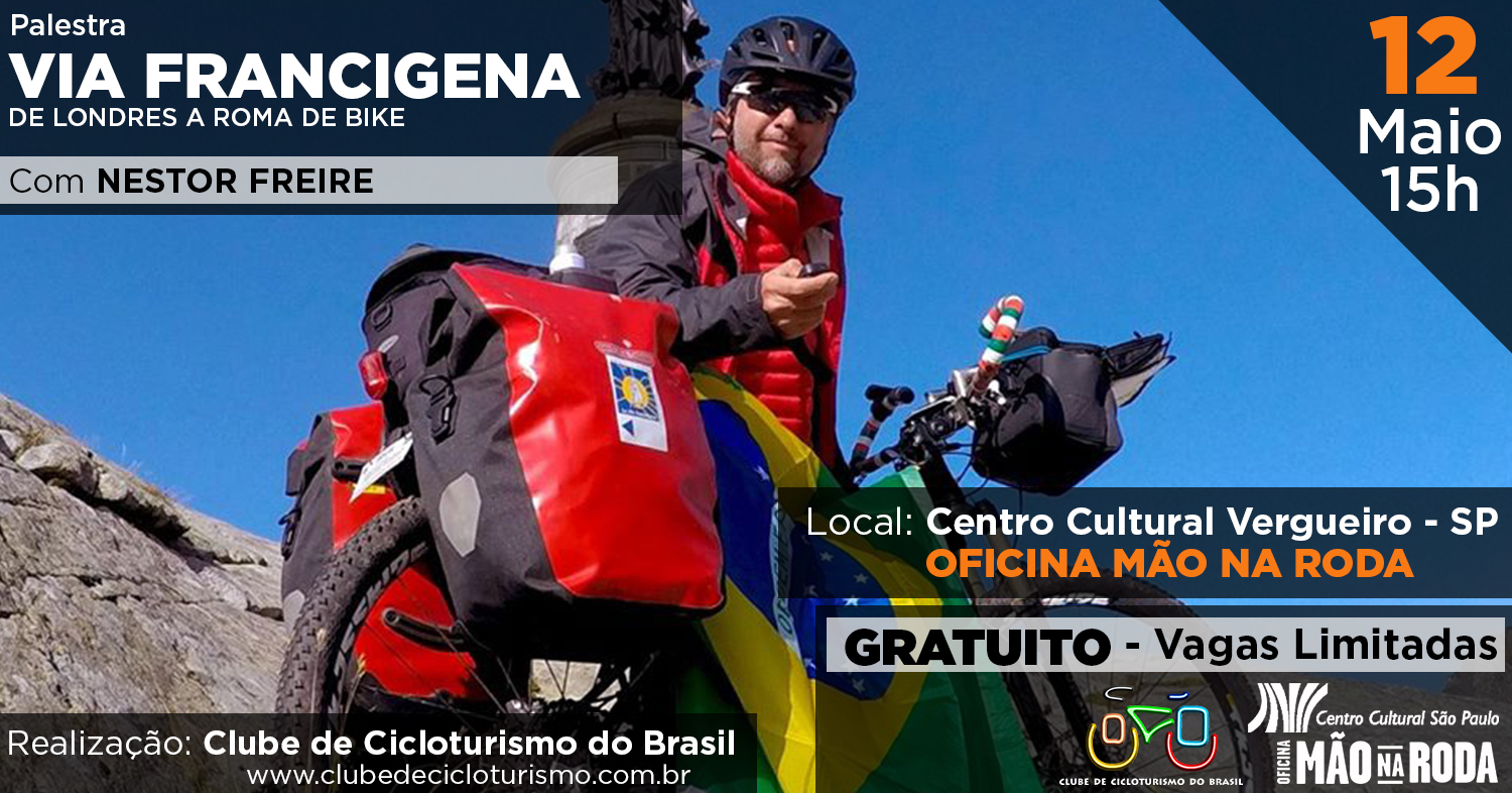 Esta atividade faz parte do ciclo de palestras e encontros mensais do Clube de Cicloturismo do Brasil no Centro Cultural São Paulo - Vergueiro (CCSP) em parceria com a Oficina Mão na Roda, sempre no segundo sábado do mês.