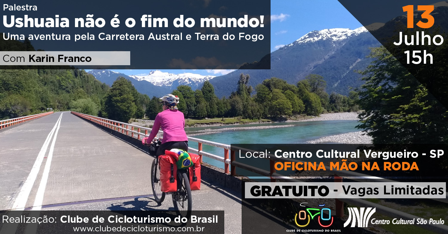 Esta atividade faz parte do ciclo de palestras e encontros mensais do Clube de Cicloturismo do Brasil no Centro Cultural São Paulo - Vergueiro (CCSP) em parceria com a Oficina Mão na Roda, sempre no segundo sábado do mês.